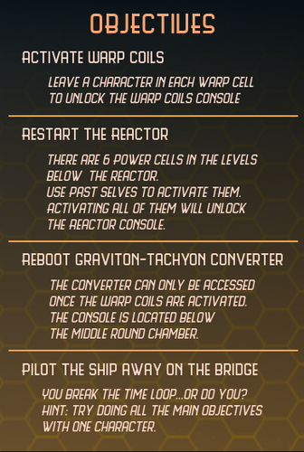 But each time she will be able to see her Past Selves running around the ship as she did previously. Using this to her advantage she will be able to complete all of her objectives before the time loop resets.